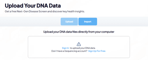 Du behøver ikke at købe et nyt DNA-kit. Sequencing.com giver dig mulighed for at importere dine råfiler gratis fra 23andMe, Living DNA, Quick DNA, FamilyTreeDNA, TellmeGen eller ethvert andet slægtsforskningslaboratorium.