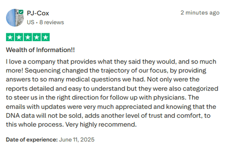 Brugerne roser kundeservicens reaktionsevne og effektivitet. DNA-rapporterne anses for at være omfattende, klare og tilgængelige. Mange værdsætter resultaternes pålidelighed og gennemsigtighed, især når det gælder konkrete svar om sygdommes oprindelse eller familiære dispositioner.